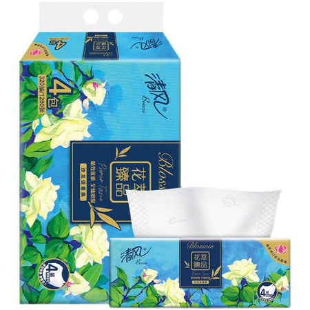 清风花萃臻品系列 抽纸巾 - 4层 - 4包装 - 80张