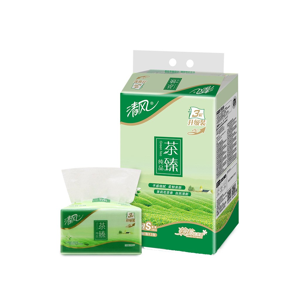 清风茶臻纯品系列 抽纸巾 - 3层 - 3包装 - 150张