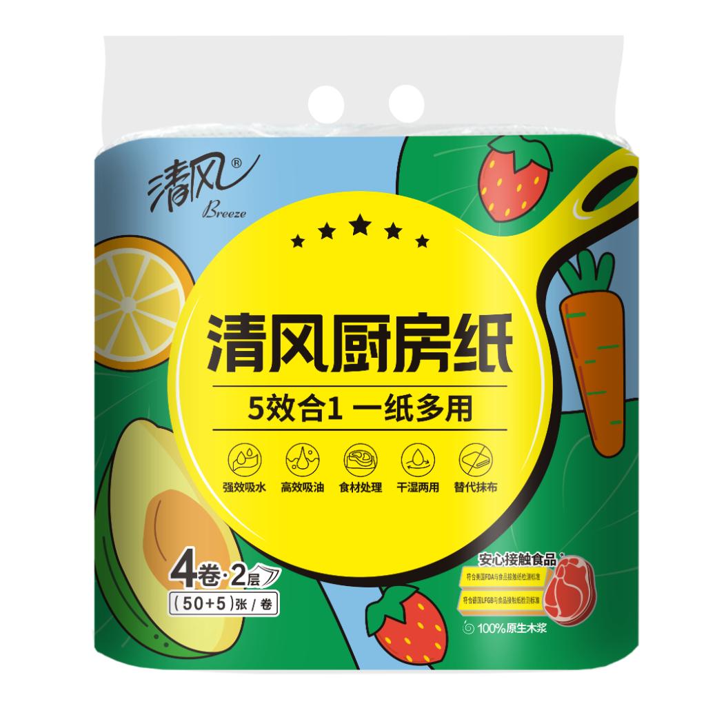清风厨房纸巾 - 2层 - 4卷装 - 55张