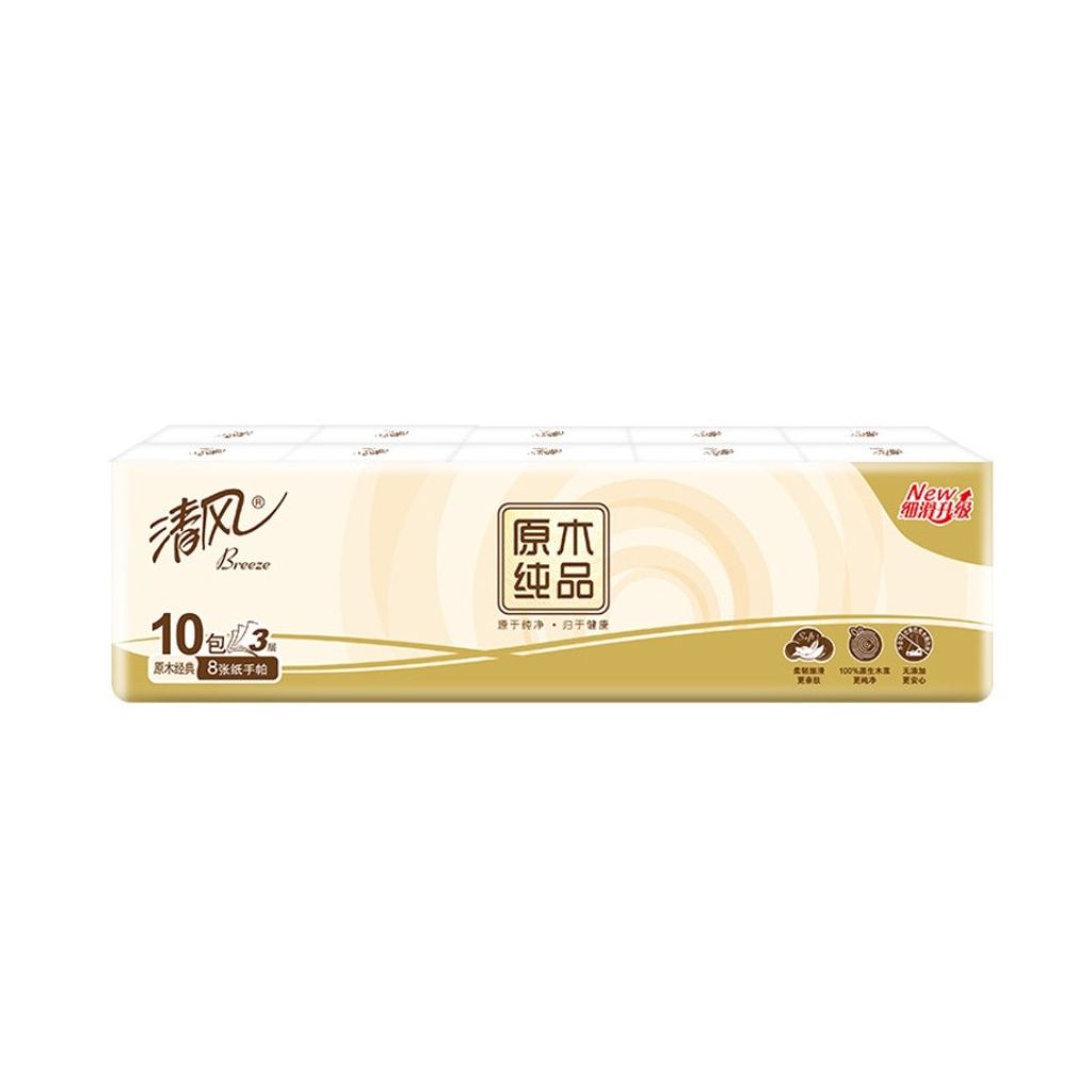 清风原木系列 抽纸巾 - 3层 - 10包装 - 8张