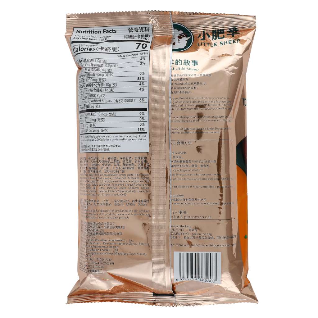 Indulge in the rich and savoury experience of Little Sheep Hot Pot Seasoning in Tomato Flavour. This premium hot pot base combines the delightful essence of ripe tomatoes with an exquisite blend of spices, creating a perfect harmony of flavours that elevate your hot pot dining to a whole new level. Whether you are hosting a gathering or enjoying a cosy meal with family, this seasoning provides an authentic taste that will satisfy your cravings for delicious, restaurant-quality hot pot at home. Easy to use and expertly crafted, Little Sheep Hot Pot Seasoning ensures every meal is a culinary delight.