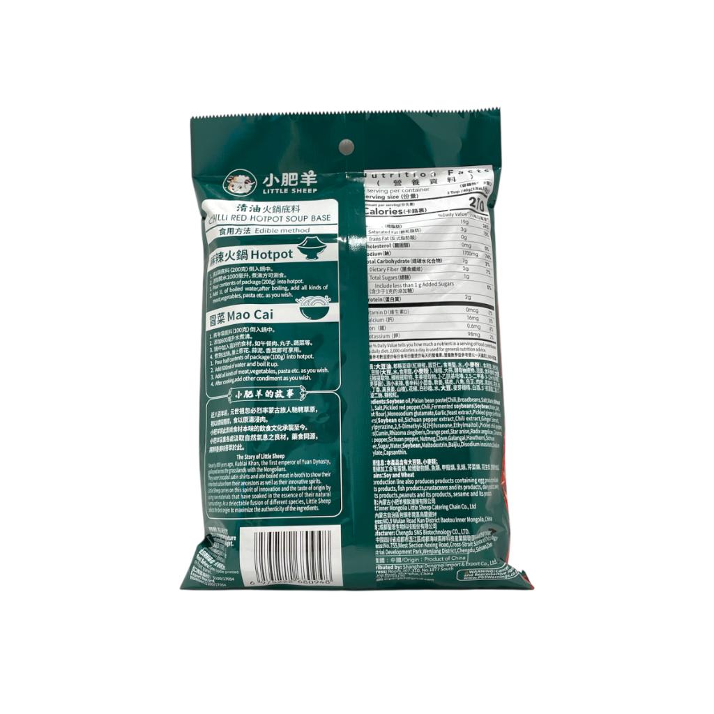 Little Sheep Chilli Red Hot Pot Soup Base brings the bold and fiery flavours of Sichuan cuisine to your hot pot. This premium broth is expertly crafted with a blend of spicy chilli, fragrant Sichuan peppercorns, and rich oils, creating a vibrant and intense flavour profile that delivers a true taste of the region. Perfect for spice lovers, it infuses your hot pot with a harmonious balance of heat and numbing sensation, making each bite a tantalising experience. Whether you're cooking meats, seafood, or vegetables, the Little Sheep Chilli Red Hot Pot Soup Base enhances your meal with its distinctive, aromatic heat. Ideal for those who enjoy bold, authentic flavours, this hot pot base is a must-have for any Sichuan food enthusiast.
