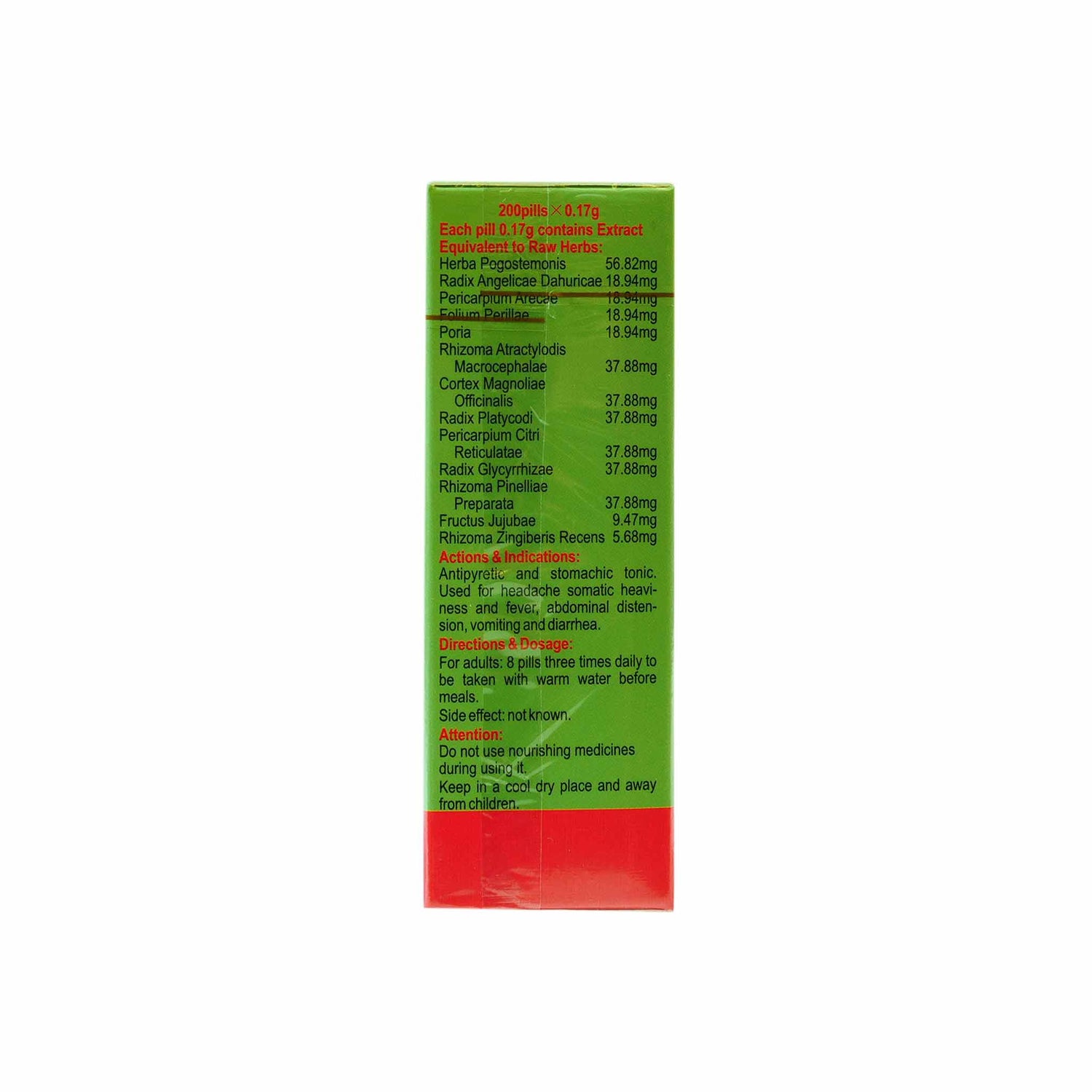 Antipyretic and stomachic tonic. Used for headache somatic heaviness and fever, abdominal distension, vomitting and diarrhea.