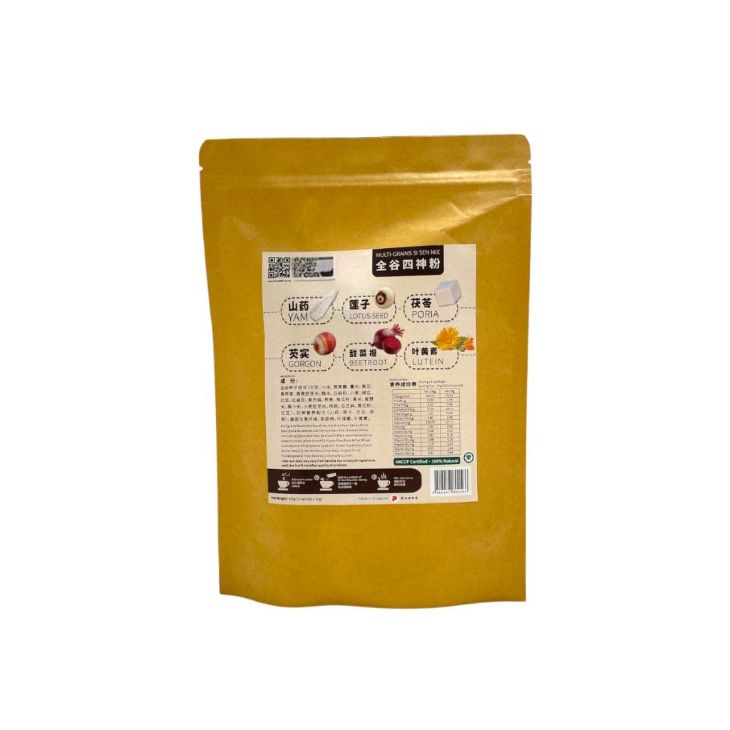 Multi Grains Si Sen Mix is a wholesome and nutritious blend of carefully selected grains, seeds, and traditional herbs designed to support overall well-being. This unique mix includes a variety of grains such as oats, millet, black beans, and brown rice, alongside a nourishing combination of four divine herbs — yam, lotus seeds, coix seeds, and poria. Enriched with fibre from vegetables and fruits, along with essential nutrients like chlorophyll and lutein, this blend offers a powerful boost of antioxidants and supports digestive health. Ideal for making a nutritious drink, porridge, or adding to smoothies, Multi Grains Si Sen Mix is the perfect choice for those seeking a healthy and energising option for daily consumption. The 20g x 10 pack ensures convenient portion sizes for easy use.