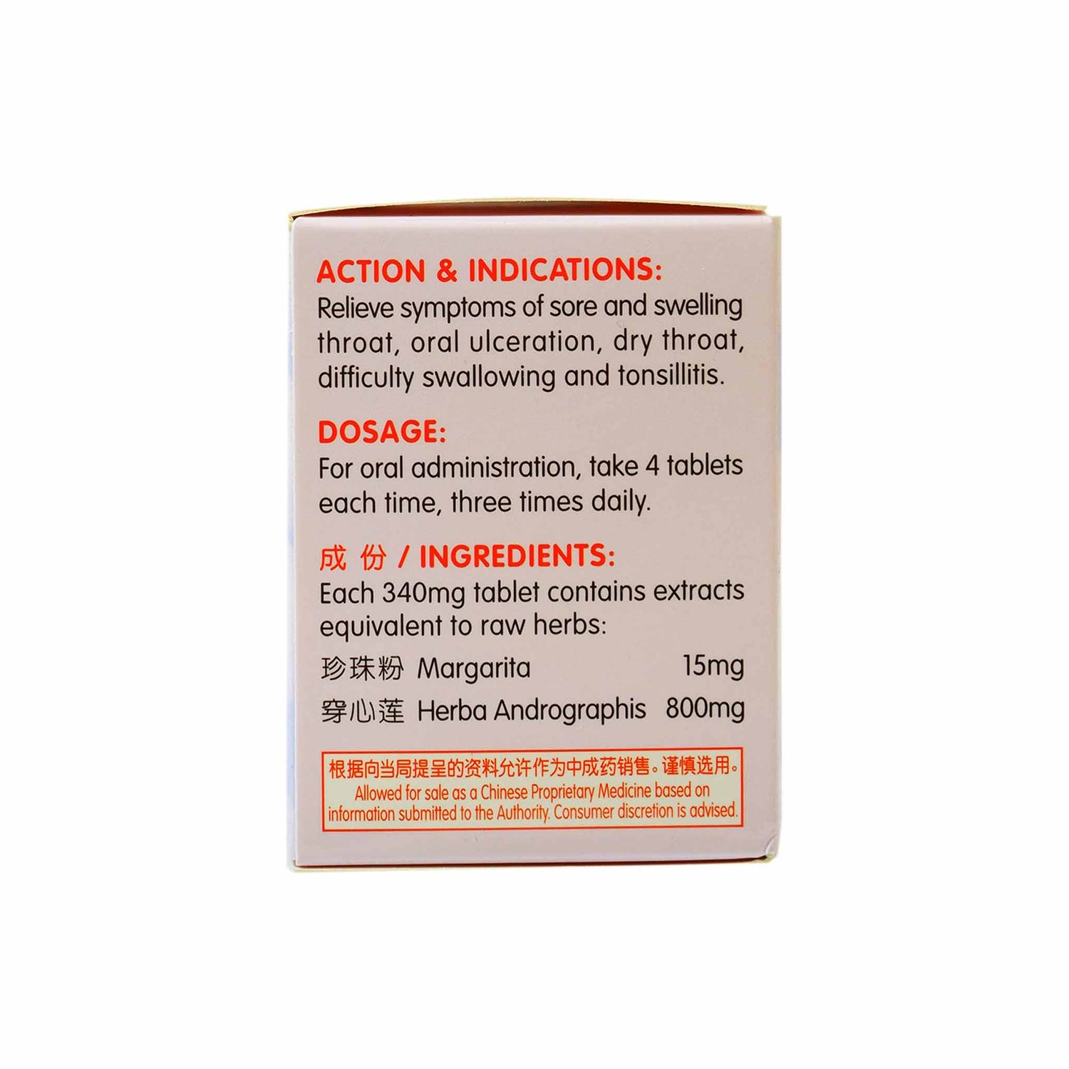 Relieve symptoms of sore and welling throat, oral ulceration, dry throat, difficulty swallowing and tonsillitis.