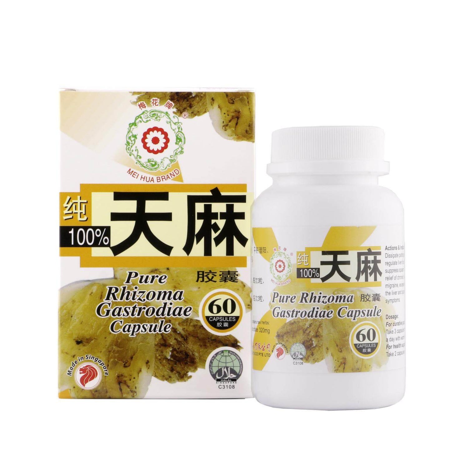 梅花牌纯正天麻胶囊60粒