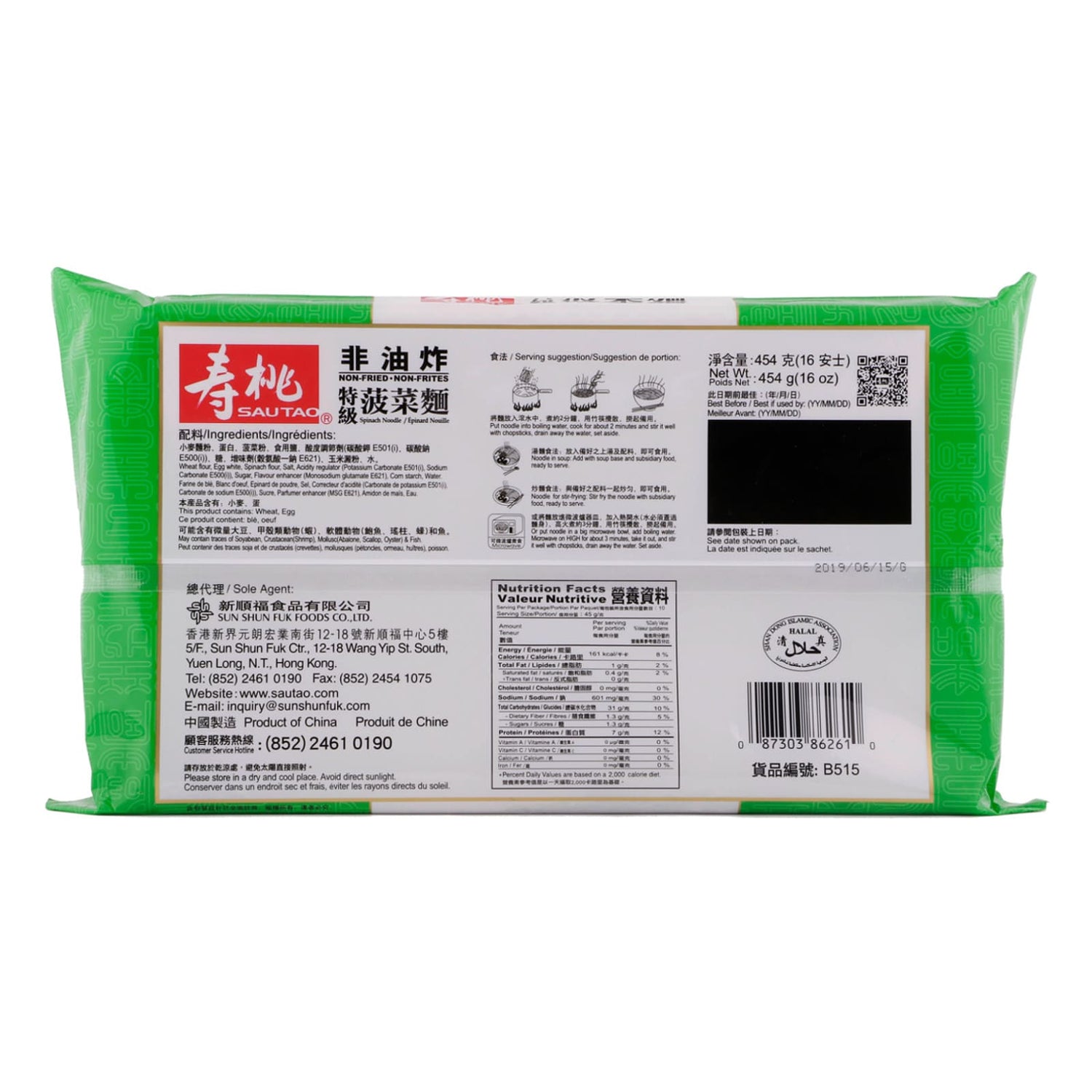 Sau Tao Spinach Noodle Long Pack is backordered and will ship as soon as it is back in stock.