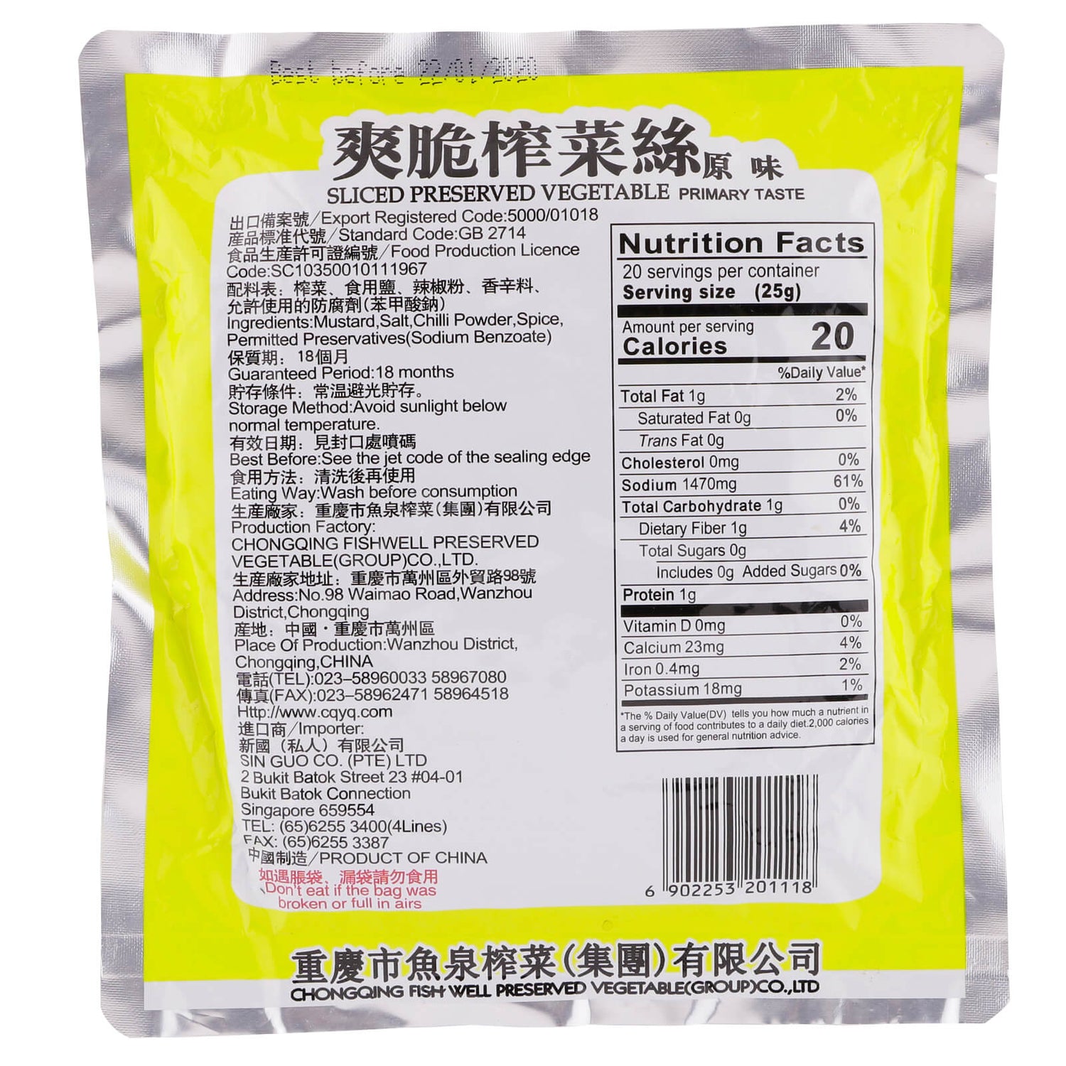 Sliced Preserved Vegetable is backordered and will ship as soon as it is back in stock.