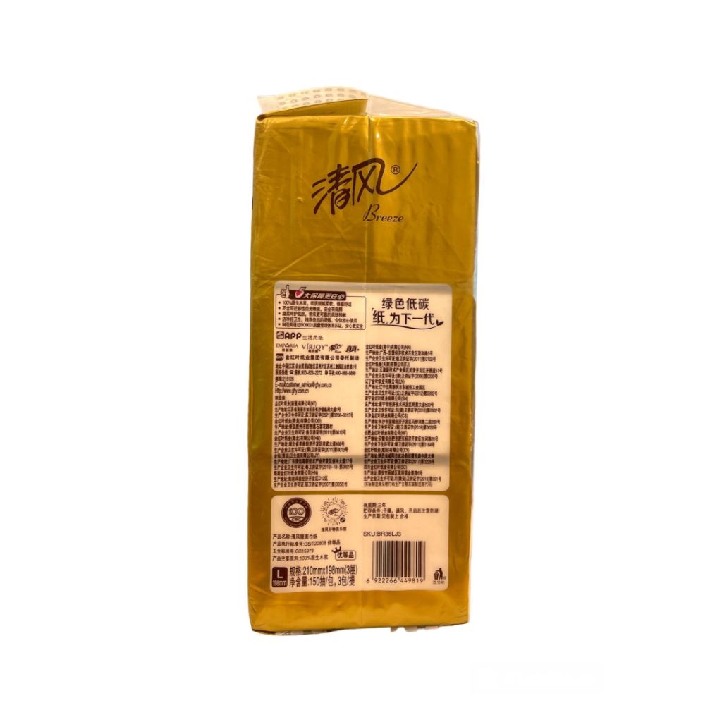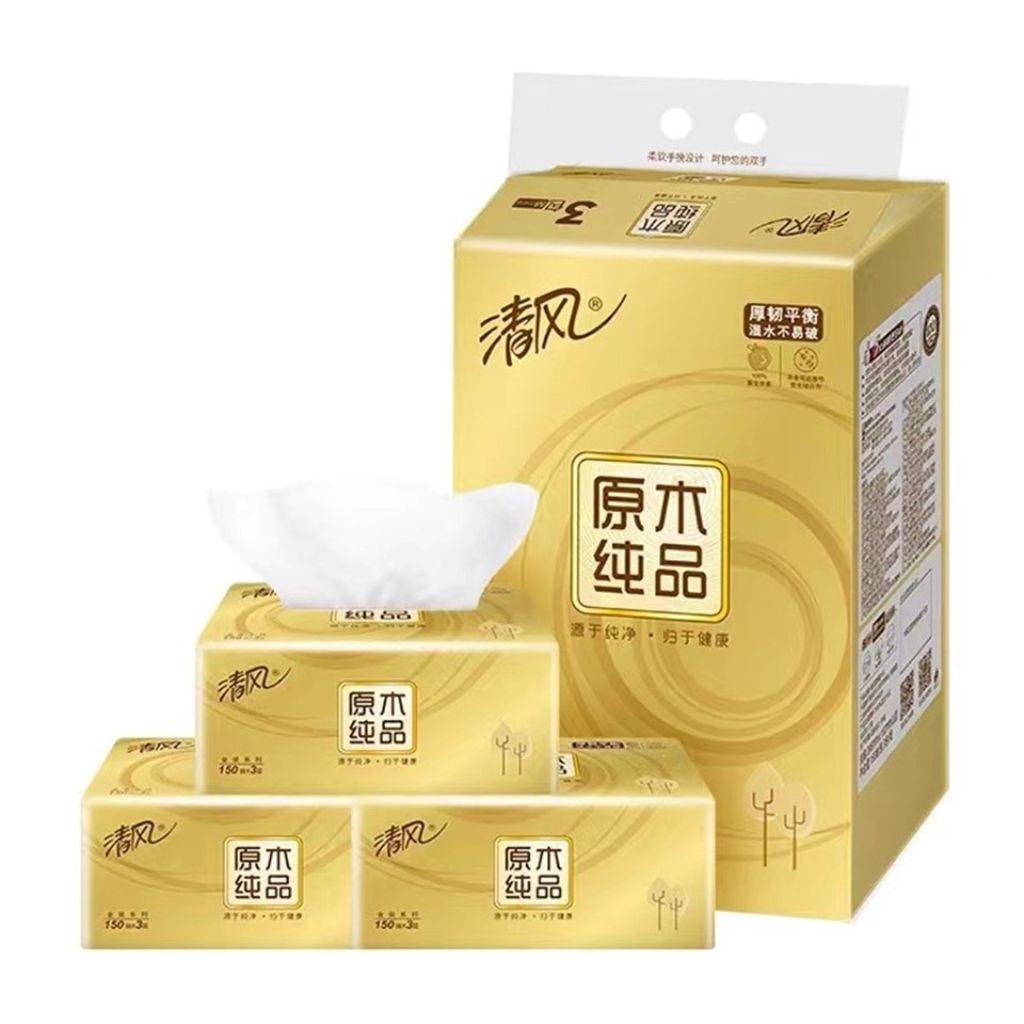 清风金装系列 抽纸巾 - 3层 - 3包装 - 150张