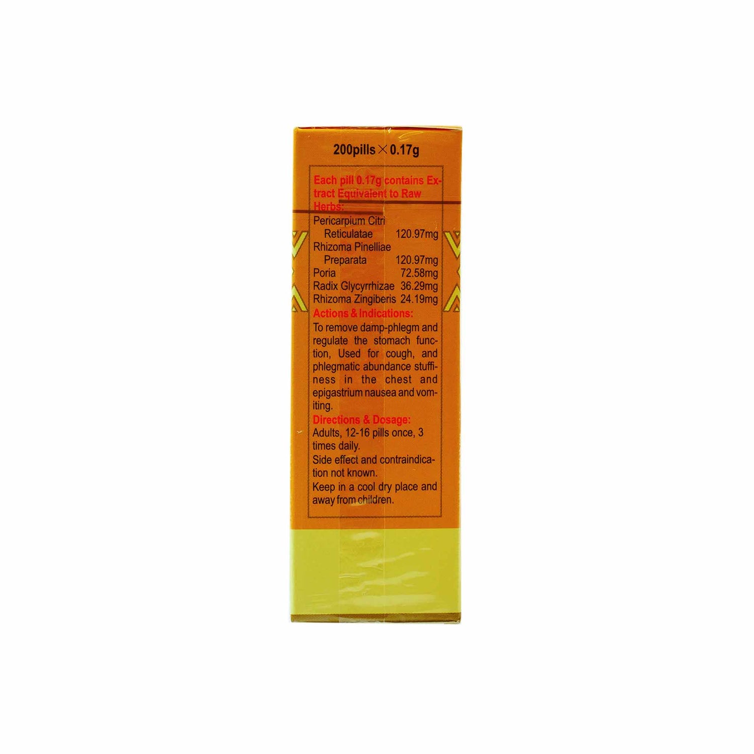 To remove the damp-phlegm and regulate the stomach function. Used for cough and phlegmatic abundance stuffiness in the chest and epigastrium nausea and vomitting.