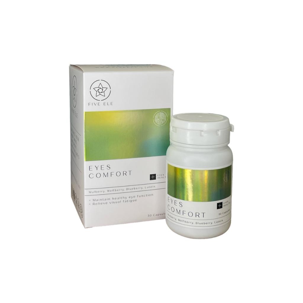 FIVE ELE Eyes Comfort is a specialized formula crafted to support your eye health and alleviate visual fatigue. Enriched with Mulberry, Wolfberry, Blueberry, and Lutein, this blend provides comprehensive nourishment for your eyes.