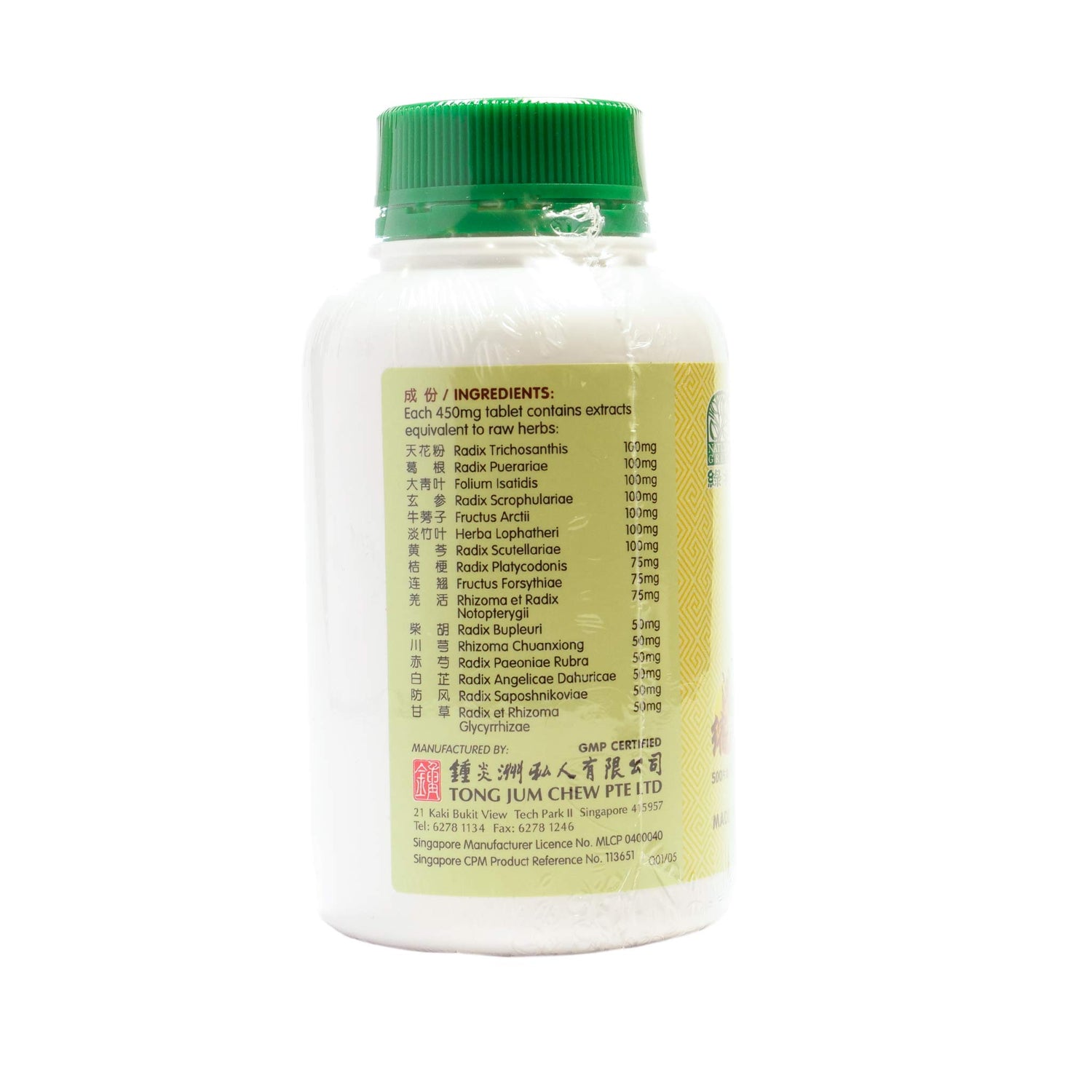 Used for chills, fever, headache, thirst, dry throat, no sweat, mumps and erysipelas of the face due to influenza or common cold.