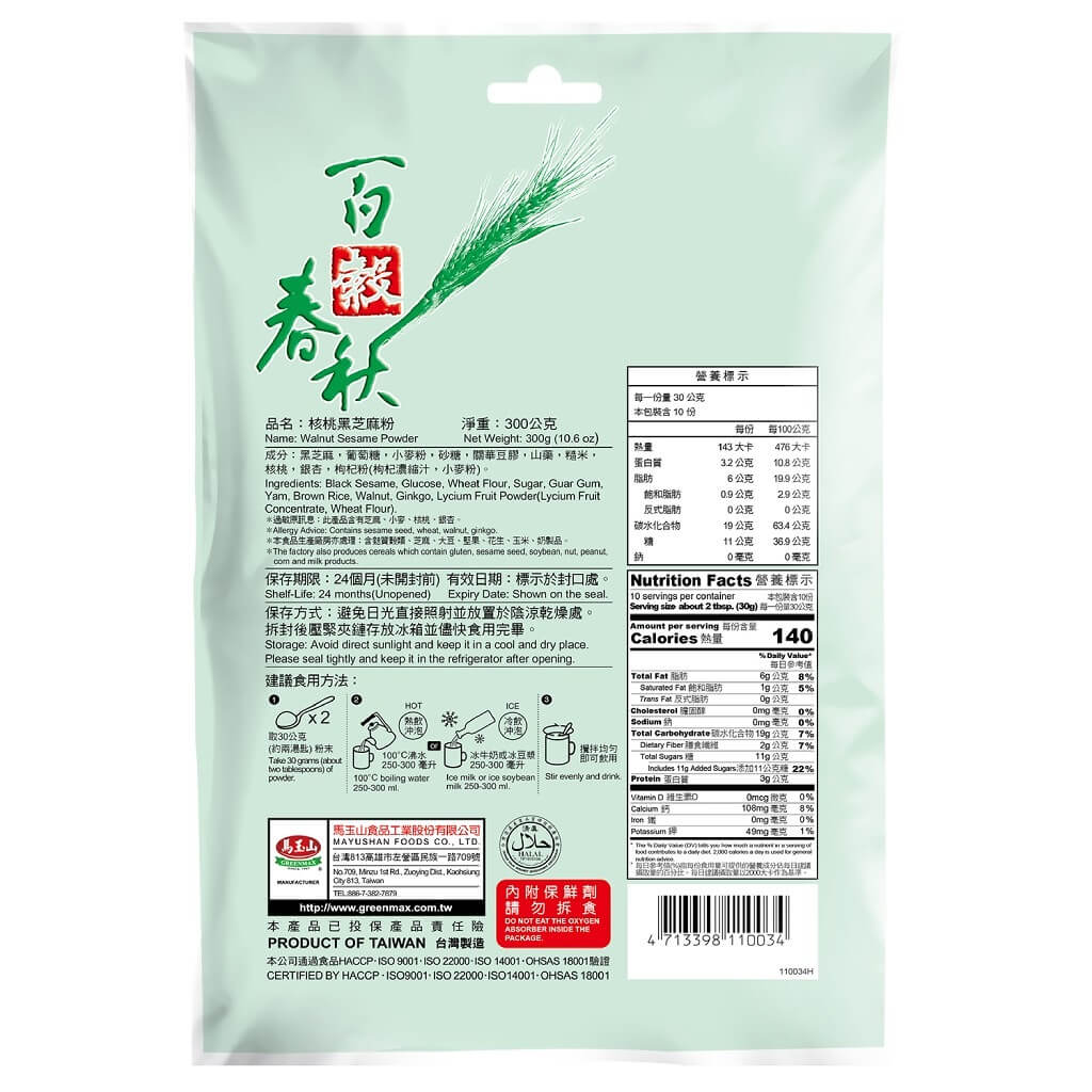 Allergy: Sesame Seeds, Wheat, Walnuts, Ginkgo
