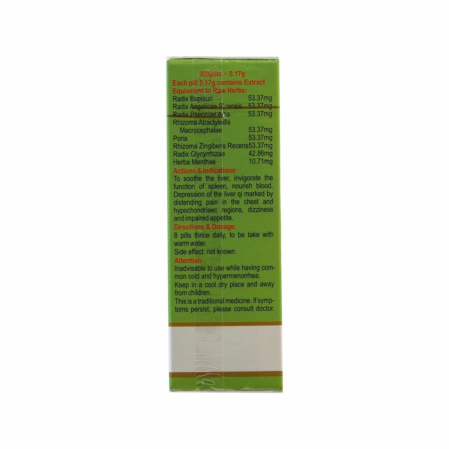 To soothe the liver, invigorate the function of spleen, nourish blood. Depression of the liver qi marked by distending pain in the chest and hypochondriaec regions, dizziness and impaired appetite.