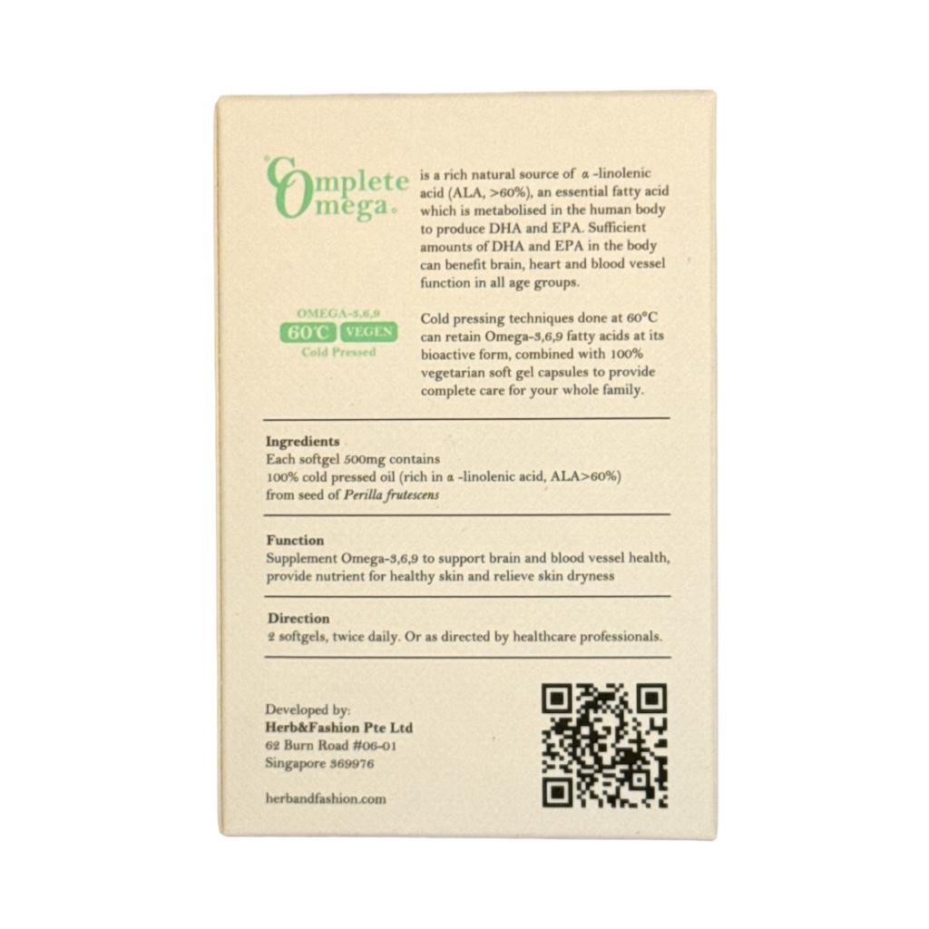 Innermost Radiance Complete Omega is a potent natural source of alpha-linolenic acid (ALA, >60%), an essential fatty acid that converts into DHA and EPA in the body. Adequate levels of DHA and EPA support brain, heart, and vascular function across all ages. Our Omega-3,6,9 supplement comes in 60 vegan capsules, cold-pressed at 60°C to preserve the bioactive forms of omega fatty acids. Encased in 100% vegetarian soft gel capsules, it provides comprehensive care for your entire family, supporting brain health, cardiovascular function, and nourishing skin while alleviating dryness.