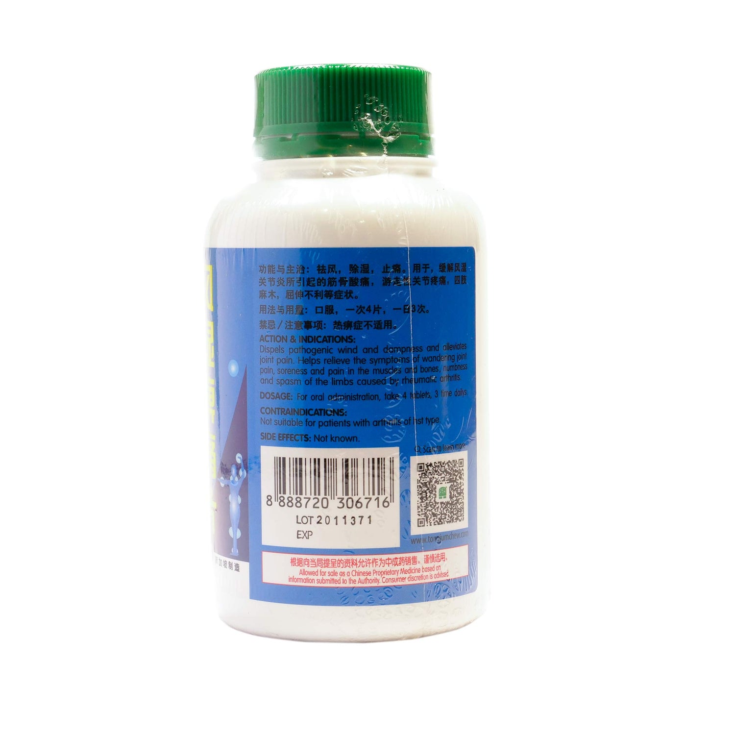 Dispels pathogenic wind and dampness and alleviates joint pain.  Helps relieve the symptoms of wandering joint pain, soreness and pain in the muscles and bones, numbness and spasm of the limbs caused by rheumatic arthritis.