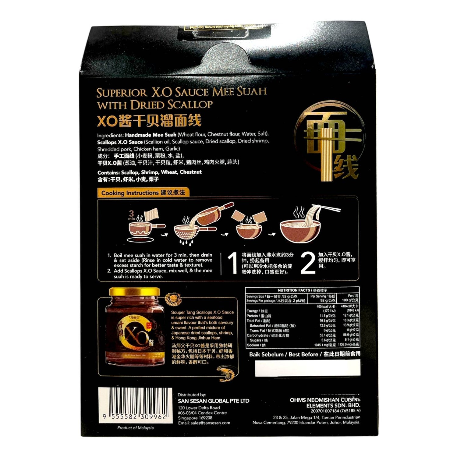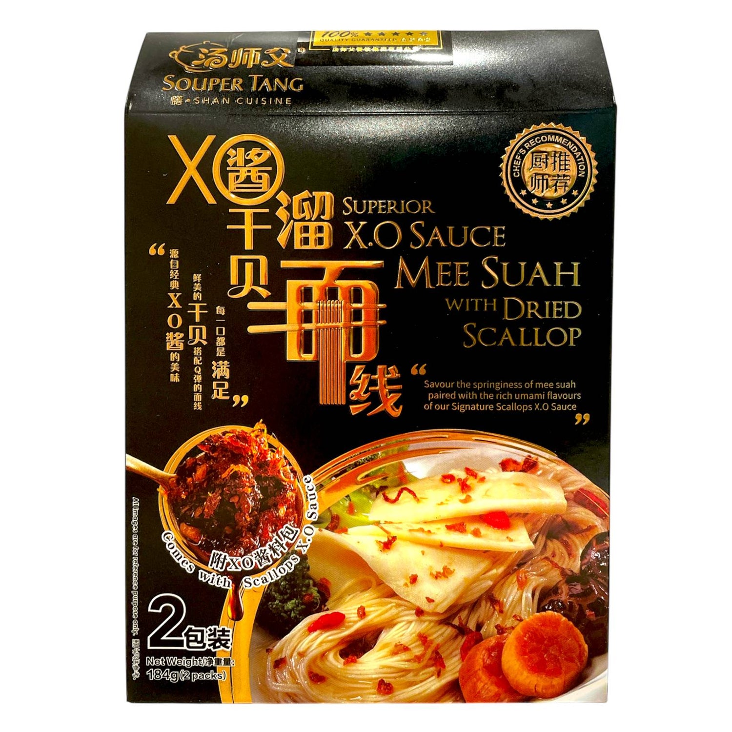 Souper Tang’s XO Sauce Mee Suah with Dried Scallop is a gourmet noodle dish featuring rich XO sauce, dried scallops, shrimp, and shredded pork. The fine wheat noodles soak up the umami-rich broth, delivering a luxurious taste experience. Perfect for special occasions or indulgent meals, it’s a fusion of tradition and premium ingredients.
