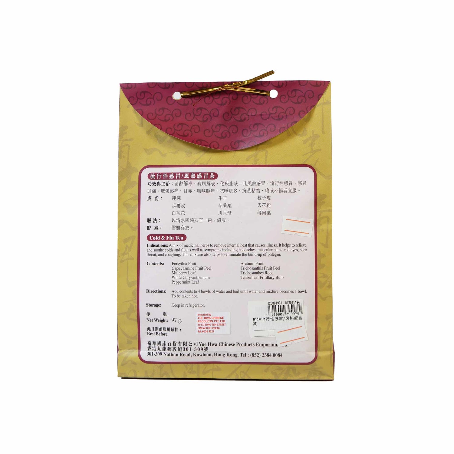 A mix of medicinal herbs to remove internal heat that causes illness. It helps to relieve and soothe colds and flu, as well as symptoms including headaches, muscular pains, red eyes, sore throat and coughing. This mixture also helps to eliminate the build-up of phlegm.